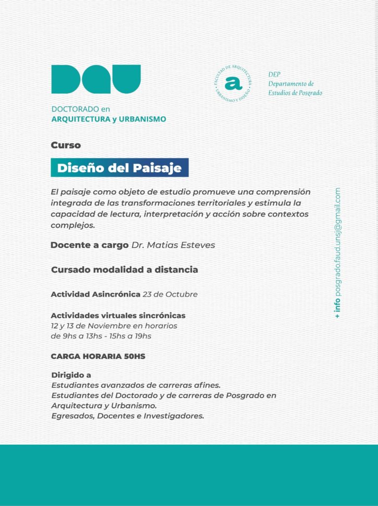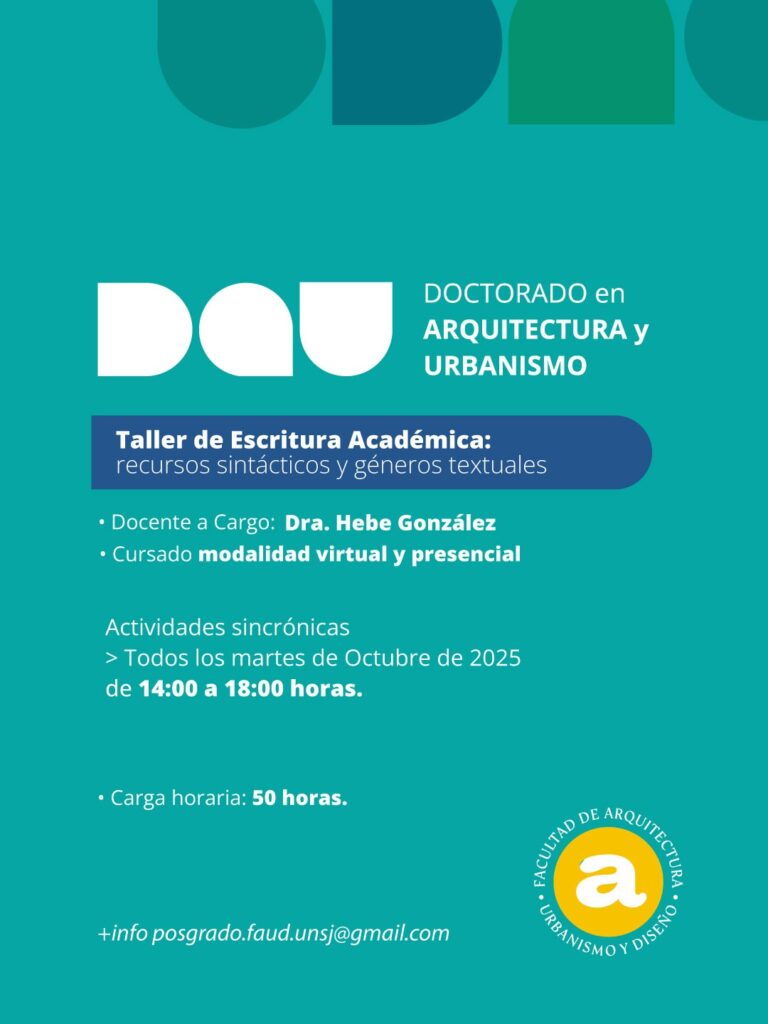 Para inscripciones y detalles adicionales, consultá al mail de posgrado.faud.unsj@gmail.com