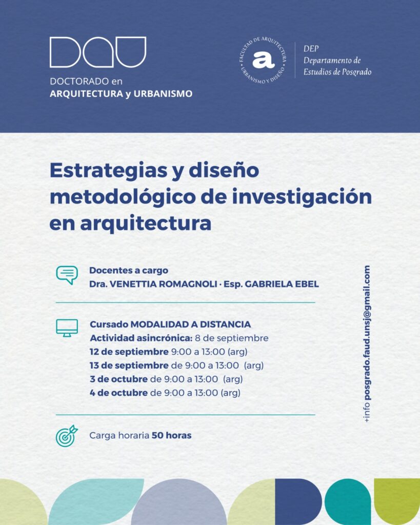 Les compartimos novedades sobre el próximo curso a dictarse en el marco del Doctorado en Arquitectura y Urbanismo FAUD-UNSJ: